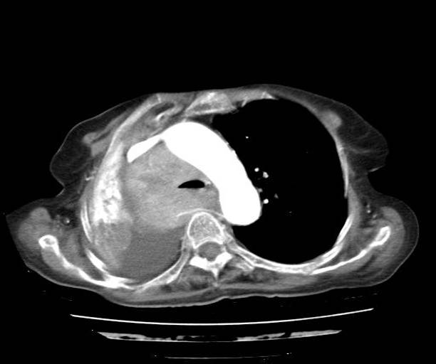 T3:Tumour with invasion of mediastinum , heart, great vessels,
