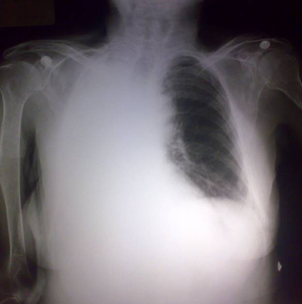Neck: Trachea shifted to right, accessory muscles of respiration +