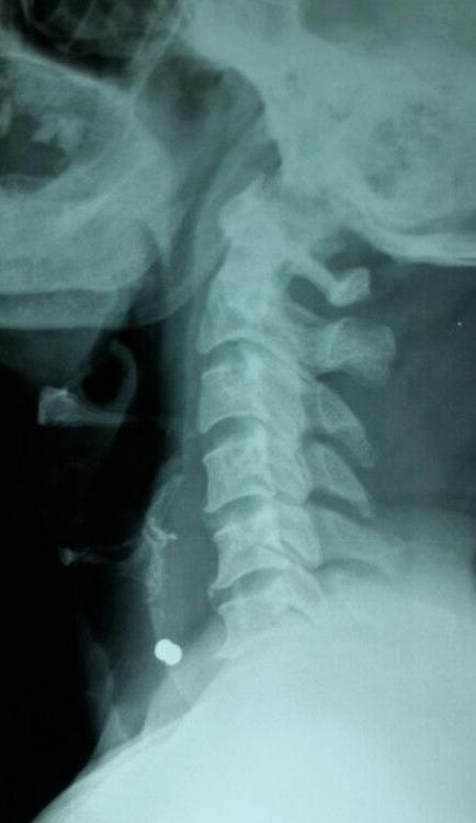 X Ray Neck showed the bullet anterior to the lower border of C6 Vertebra.