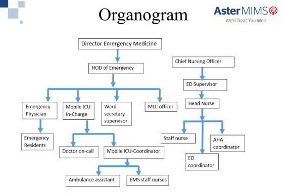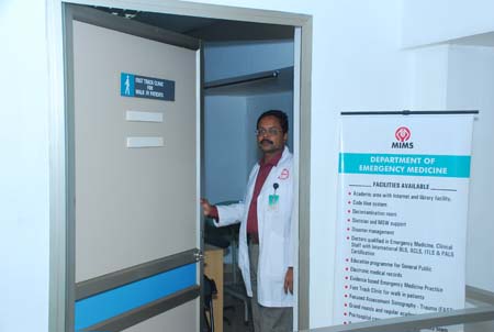 MIMS is the first NABH accredited multi-specialty hospital established in 2001 and our motto is “A Caring mission, A Global vision”. The casualty service was upgraded to "Emergency Medicine" department with international standards in 2006. The department is renovated both structurally and functionally and is now outstanding with adequate equipments and qualified staff support. Our concept has been accepted by the medical world. The department has become popular among public within a short span of time. The top management of MIMS extended their whole hearted support to develop this new specialty in Kerala. Dr.Azad Moopen [Chairman MIMS],Mr.Salahuddin [Vice Chairman -MIMS Academy],Dr.Abdulla Cherayakkat [Manging Director MIMS] ,Prof. K.K.Varma [Director MIMS Academy] ,Dr.Bobby Kapoor [Director ,Fellowship programs] ,Dr.George Abraham [Chairman IIEMS] and Dr.Tamorish Kole [HOD ,EM ,Max hospital Delhi] with their tremendous support, have vital roles in developing an International emergency department at MIMS. The department is functioning with the motto “Join hands.....Save Lives ...” and is saving many savable lives.